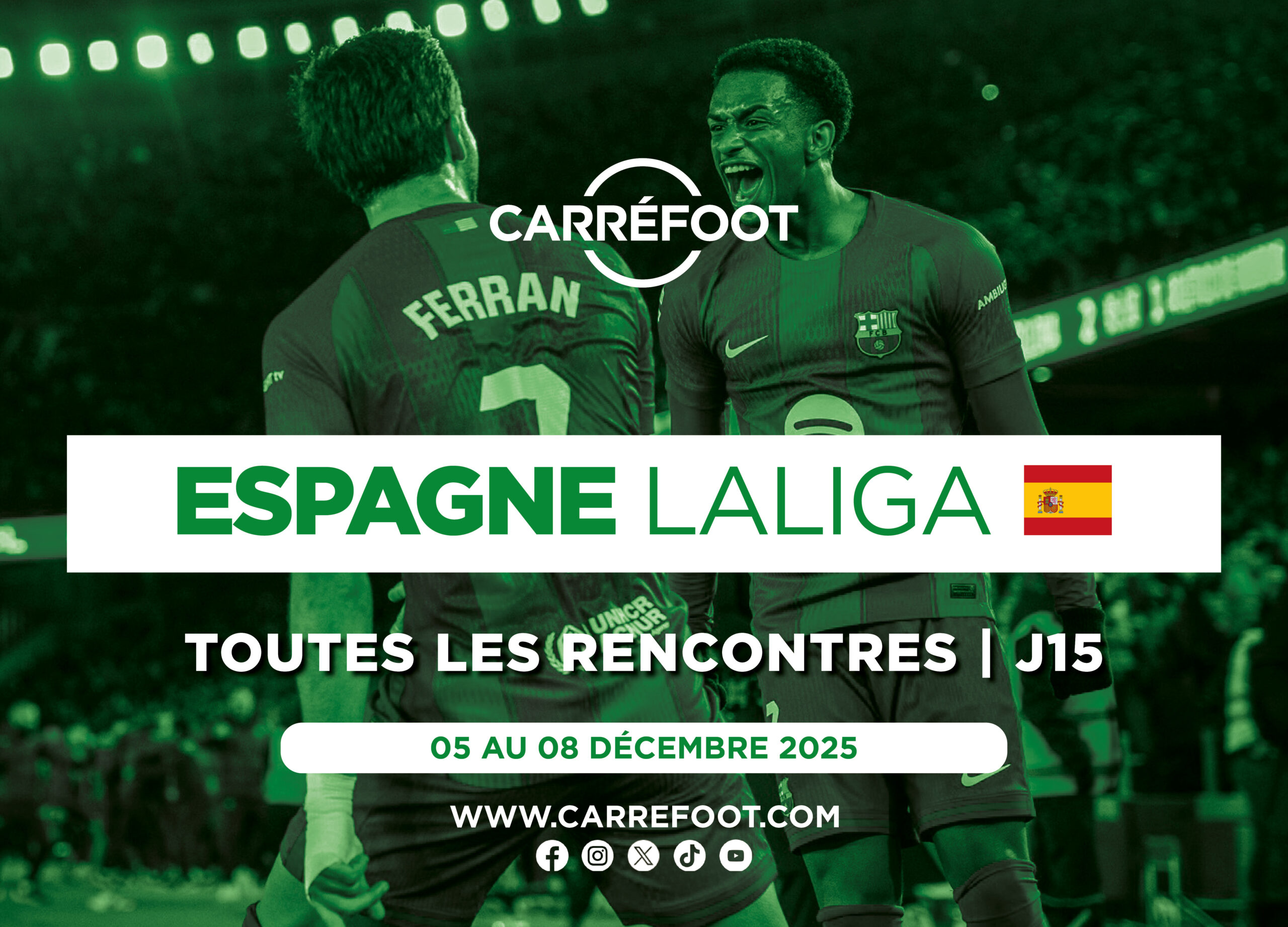 La 15e journée de Liga promet une nouvelle série de matchs décisifs à tous les étages du classement. Le FC Barcelone cherche à poursuivre sa belle série pour rester en tête, tandis que le Real Madrid reste à l’affût, prêt à profiter du moindre faux pas du leader. Villarreal doit défendre sa place sur le podium, et l’Atlético Madrid tente de se relancer après son revers contre le Barça. Dans le bas du classement, Oviedo, Levante et Gérone se battent pour chaque point afin d’éviter la zone de relégation, rendant cette journée cruciale pour la suite du championnat.