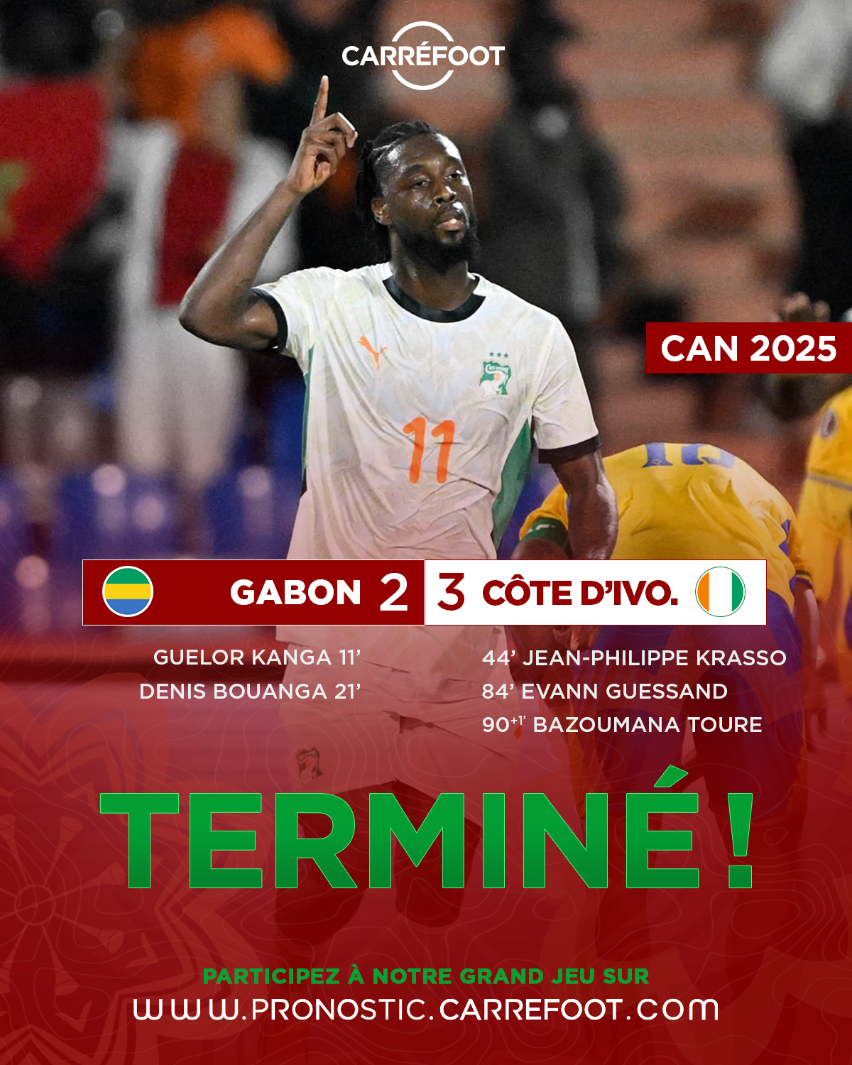 Quel scénario à Marrakech ! Pour son dernier match de poule, la Côte d’Ivoire a arraché une victoire héroïque face au Gabon (3-2). Menés et bousculés par des Panthères déchaînées, les Éléphants ont prouvé qu’ils avaient du cœur en renversant la vapeur dans les derniers instants du match.
