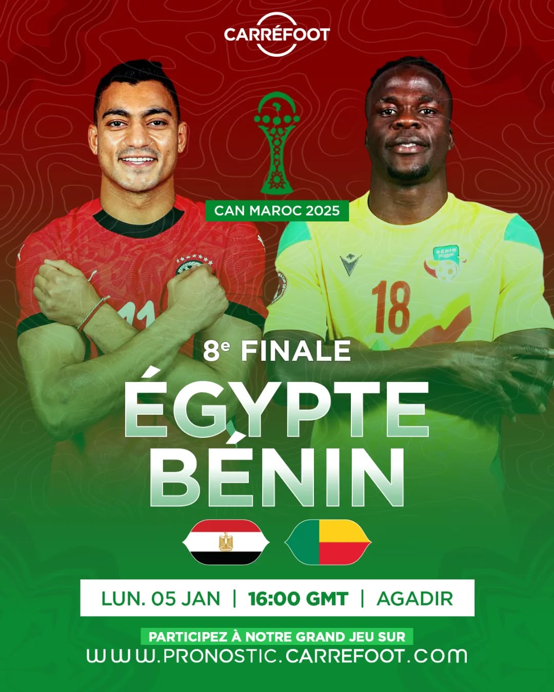 Ce rendez-vous avec l’exploit est fixé au stade Adrar d’Agadir, ce lundi 5 janvier 2026. Le coup d’envoi sera donné à 17h au Maroc, au Bénin et à 18h en Égypte. Dans cette magnifique enceinte qui a déjà abrité quelques belles confrontations de cette compétition, les Guépards tenteront de faire vaciller un géant. Pour eux, ce huitième de finale est une opportunité de marquer l’histoire, de réaliser l’exploit et de montrer que le football béninois peut rivaliser avec les plus grands.
